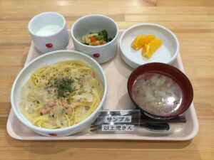 今日のお給食は”鮭の豆乳クリームスパゲティ”でした!