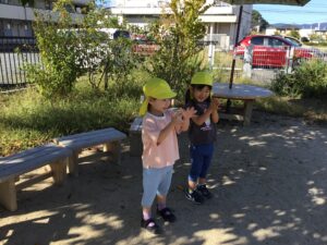 とっても良いお天気の中、今日もお外遊びを楽しんだりんごの木のお友だちです!