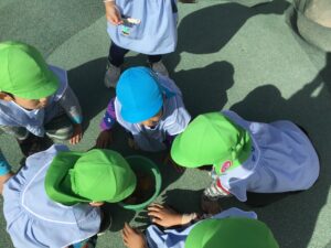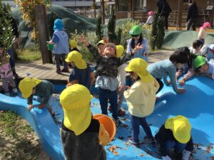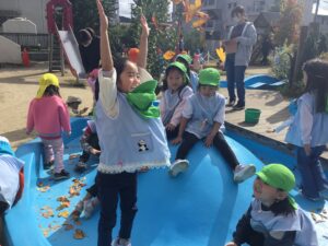 落ち葉や小さな虫など、季節の変化を沢山発見し、遊んでいた子どもたちでした!