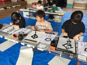 今日はももぐみさんで”筆あそび”がありました!