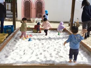 また、1.2歳児クラスのこひつじの会もあり、園庭遊びを楽しみました!