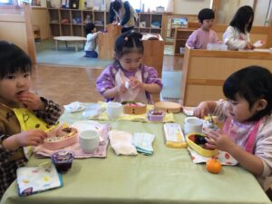また、今日はお誕生会があり、ひよこぐみさんはお部屋で、3~5歳児クラスのお友だちは教会にてお誕生会をしました!